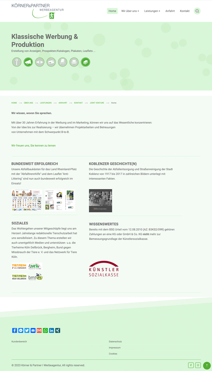 ReferenzenHier finden Sie eine kleine Auswahl unserer jüngsten Web-Projekte... Betrieblicher Dienst für Inklusion(BDI) www.polytec-jobservice.de Buchbindereiund Bibliotheksdienstleister www.selke-gmbh.de Hersteller wellenförmiger Liegebänke ww.rontondo.de Abfallbaukästen für das Land Rheinland-Pfalz "Abfalltrennhilfe" und "Anti-Littering" www.abfalltrennhilfe.rlp-umwelt.de Zentrum für Ambulante Hämatologie und Onkologie www.zaho-rheinland.de Verein zur Förderung von Kindern mit Teilleistungsschwächen www.juvemus.de Verlag für Kunst und Unikate www.opusartis.de Internationale Full-Service Werbeagentur www.koernerundpartner.de Herstellung und Vertrieb von Nahrungsergänzungsmitteln www.care-food.de